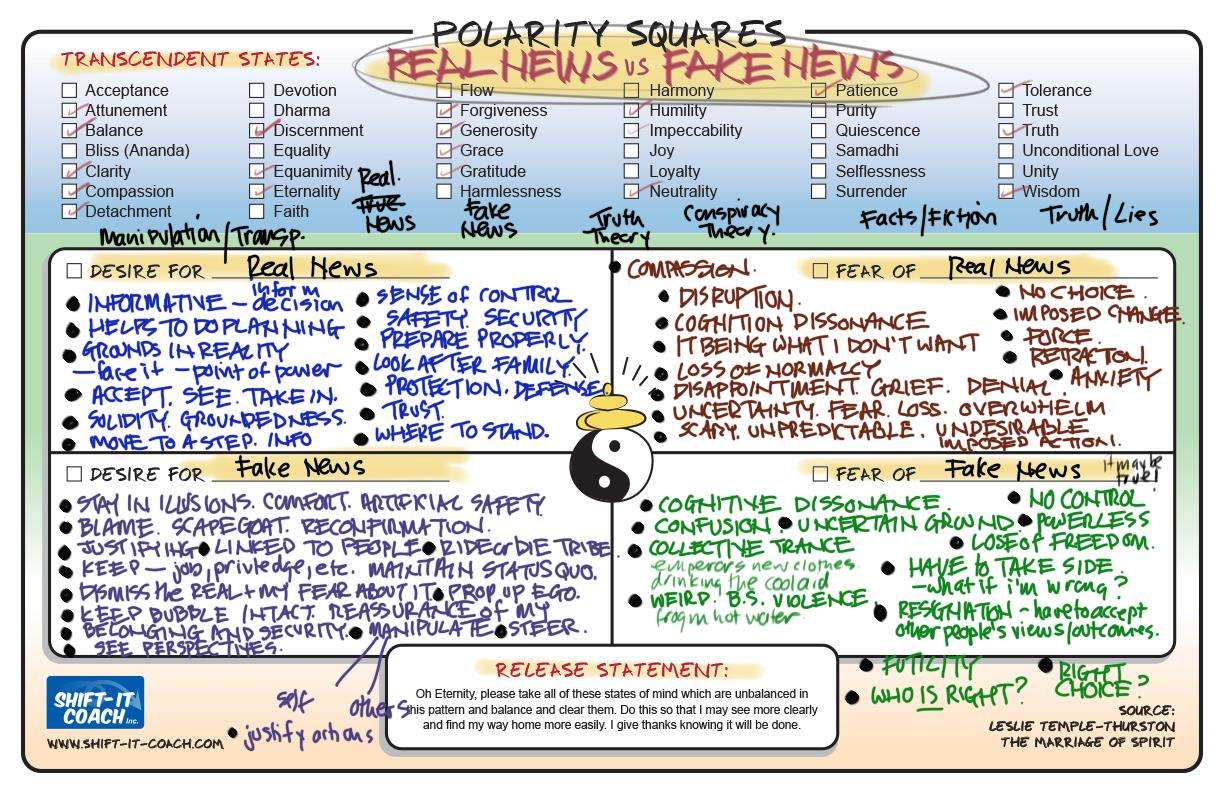 Our examination of polarities continues … this time the juicy territory of real vs fake news. Follow along as these courageous processors tackle controversial territory. Discovering many motivations are not only the same but honorable. The results – increased understanding and humility. Well done and thank you crew. Next PopUp is May 14, join us!