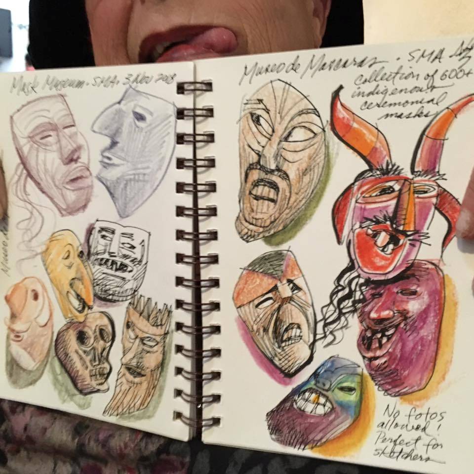With Rhoda Draws at the cemetery, el Jardin at night and The Mask Museum in SMA Mx. These are her sketches. I aspire to be like her when I grow up …
