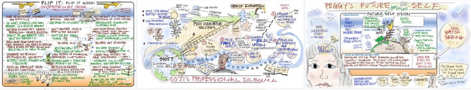 Visual Coaching is very different from Graphic Recording, Scribing and the like. Also, while artistic, its is NOT art, or solo drawing or sketching.
