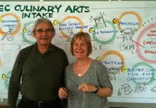 “A few months ago, my husband and I attended a Private Interactive-Visuals Training. Such a marvelous technique for capturing information for easy sharing with a targeted audience. I felt like a little kid delighted to WRITE BIG on the wall. I mapped a 16-week Culinary Arts program in a timeline format. The map is currently on the wall near the teaching kitchen where students and chef instructors easily see weekly themes — leading to graduation and the ultimate outcome of either further training and/or employment. I can’t wait to prepare a chart for a 20-week program (am already practicing how to draw a better chicken, bowl of soup, fish, chef hat… it goes on!).