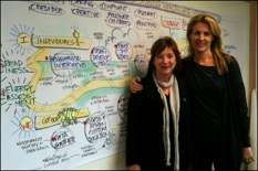 Within days of my training, I took my wall mural to an executive sales meeting with potential clients to test drive it. They quickly understood the three levels of my practice (individual, group and system) and were very excited to engage me. I landed a lucrative contract and my Story Map has become a powerful and inspirational marketing and education tool. One that explains my work in a style representative of myself as a Visual Thinker.