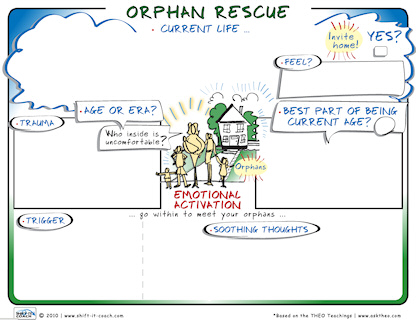 If you don’t know what to say to your Orphan, think of what you would say to any child of their age caught in a similar situation. If you are a parent, what would you say to your own child? If you aren’t a parent, think of your friend’s or colleague’s children or even children in general. Another tactic: bring in your Future Self or Higher Self to speak to your orphan. Also, seek the assistance of a qualified therapist or coach to help you ‘re-wire’ and ‘re-program’ the erroneous thinking (and feeling) that your orphan took on. (Note: I say ‘feeling’ because these feelings can have long ranging effects … in Law of Attraction speak, a person’s ‘vibration’ or ‘frequency’ can be set from these childhood experience seemingly mysteriously attracting like situations until the original trauma is SHIFTed).