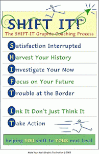 I continued to do graphic recording and graphic facilitation work and concurrently developed Graphic Coaching — developing my signature process and suite of 17 visual tools: The SHIFT-IT Graphic Coaching Process®.