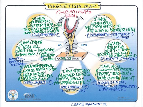 Unfortunately, whether or not that is true for her personally, it can be for others. When we go through the process of crafting a vision for ourselves it can sometimes RAISE our resistance rather than dissipate it (FYI, the visual tool I have created to help build your Vision is called a Magnetism Map … below is an example of one I created for myself recently).