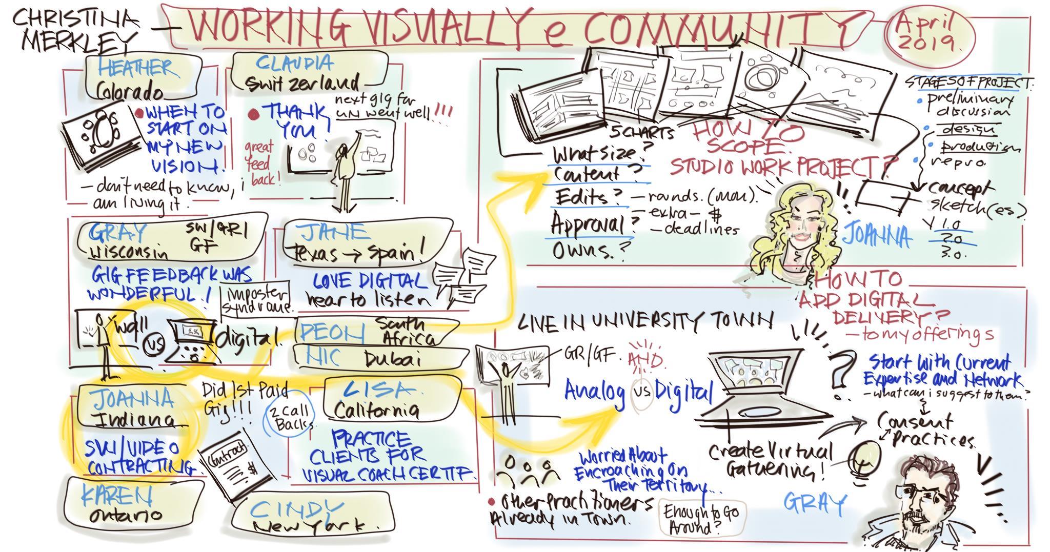 Hosted the April Drop-in Webinar for The Working Visually eCommunity on Thursday April 25th. This is a monthly support group for grads of our visual programs: Fundamentals of Working Visually, Intermediates of Working Visually, Fast & Loose Sketching and Visual Coach Certification. Visual Practitioners trained elsewhere are also welcome. Emergent Agenda from Members each month. … Read more »
