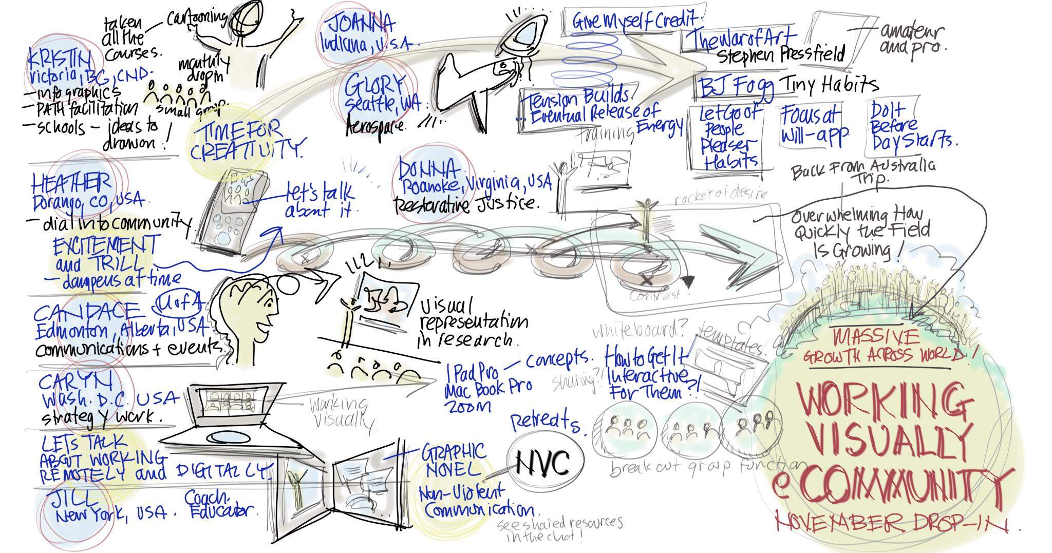 Hosted the June Drop-in Webinar for The Working Visually eCommunity on Thursday, June 20th. This is a monthly support group for grads of our visual programs: Fundamentals of Working Visually, Intermediates of Working Visually, Fast & Loose Sketching and Visual Coach Certification. Visual Practitioners trained elsewhere are also welcome. Emergent Agenda from Members each month.… Read more »