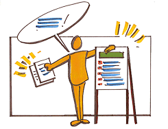 Sooooooo, I figured this explanation would be a good focus for this eZine. I’ll write a 3-part series explaining how different Process Professionals can benefit from the visual approach. In the first article (this one) I’ll explain how Authors, Speakers and Trainers can use the medium. In the second article I’ll explain how Consultants and Facilitators most commonly use the visual approach. And the third article (a topic close to my heart) I’ll explain how Interactive-Visuals are used effectively in coaching, therapy, counseling and other personal development work.