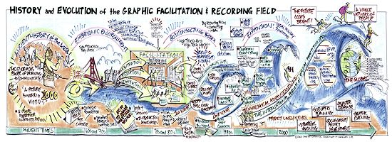 A pictorial of the history of Graphic Facilitation / Graphic Recording field … I created this one for our training handbook and also for use in skills training workshops