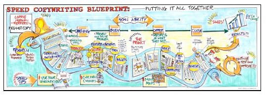 Wall-size mural for a Copywriting Expert that lays out the marketing model that she teaches her students over a 3-day workshop.