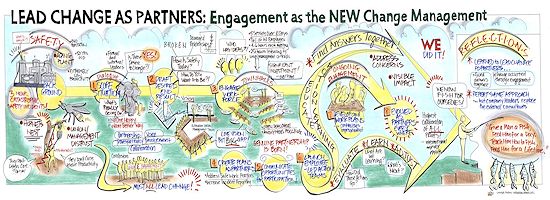 Additionally content experts (or organizations who bring content experts in to deliver information to their employees) can employ the services of a live Visual/Graphic Recorder to take real-time notes of the content as the speaker delivers it. This service is called Graphic Recording (again, see 4 Main Ways of Working Visually article for further details). After the event digital photos of the charts are shared with participants as an effective memory device and unique takeaway.