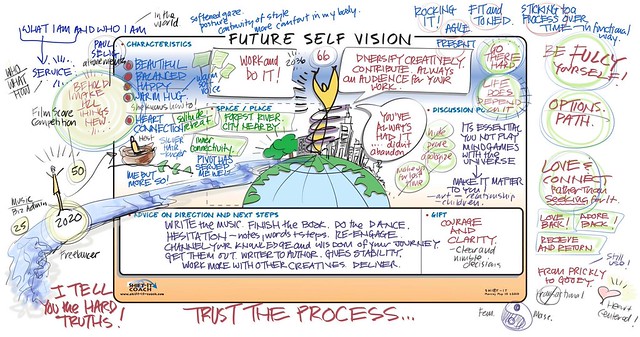 [Visual Coaching with Christina Merkley – 2020 #19]. As a transgender woman, Gala works deeply internally and externally. Her primary question now is what is her role and service? At 25 she abandoned a promising musical career for the corporate path. As 50 looms her multi-creativity beckons. Future Self commands an end to mind games and to ‘go there hard’ because life does depend on it.
