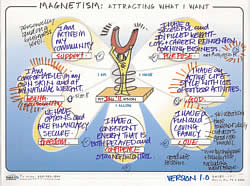 So, I invite you to map your own Vision out. As a pioneer in Graphic Coaching I’ve devised a handy template (The Magnetism Map) to help you easily (and enjoyable) create your Personal Vision. This productive visual tool is one of 14 that make up my custom SHIFT-IT Graphic Coaching Process®.