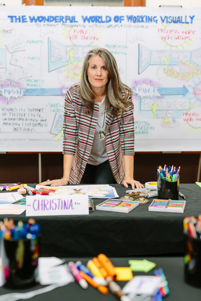 Christina has shared her experiences and know-how in the worlds of graphic recording, facilitation and coaching, which supported my vision of growing the visual side of my business that continues to manifest itself. It is an honor to have learned from one of the best. I can’t help but smile when I spend hours doing what I love. Thank you, Christina.”