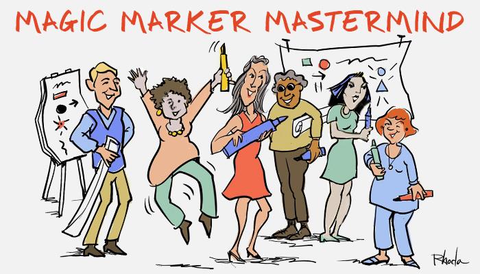 The Magic Marker Online Mastermind is conducted via live web conference technology. Each week we connect from the comfort of our own office or home. To participate, you need a computer with decent internet speed with an embedded videocam (most modern computers have this function). Phone apps and dial-in phone number is also an option for when you are on the go. All sessions are video and mp3 recorded for easy replay (should you miss a webinar or want to re-listen).