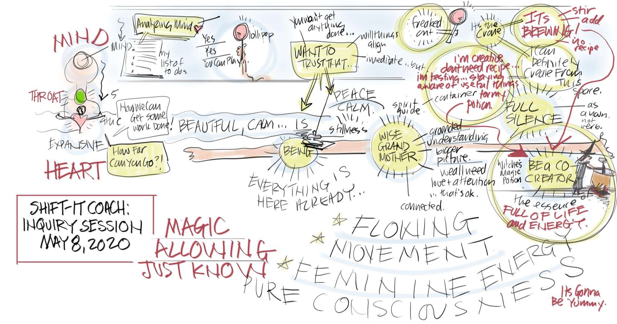 [Visual Coaching with Christina Merkley – COVID Pandemic #15]. Irene teaches at a business college. She’s also highly creative and spiritual. A powerful yet challenging polarity. Watch as her Left Brain (Mind) and Right Brain (Heart) figure out how to collaborate on a sabbatical sideswiped by the Pandemic. Co-creator discerning her own ingredients – no recipe required. Awesome job Irene. Keep going on the add and stir!