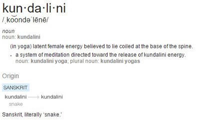 Kundalini is an ancient Sanskrit word. It is a noun that describes an energy that is housed in every human body. Kundalini is the mysterious life force that enlivened our body in the first place, and an extra bundle of it lies dormant within us, apparently coiled at the base of our spine. Given its coiled nature (when dormant) and spiral nature (when active) it’s often visually depicted as a snake. Other words for this energy are prana and chi.