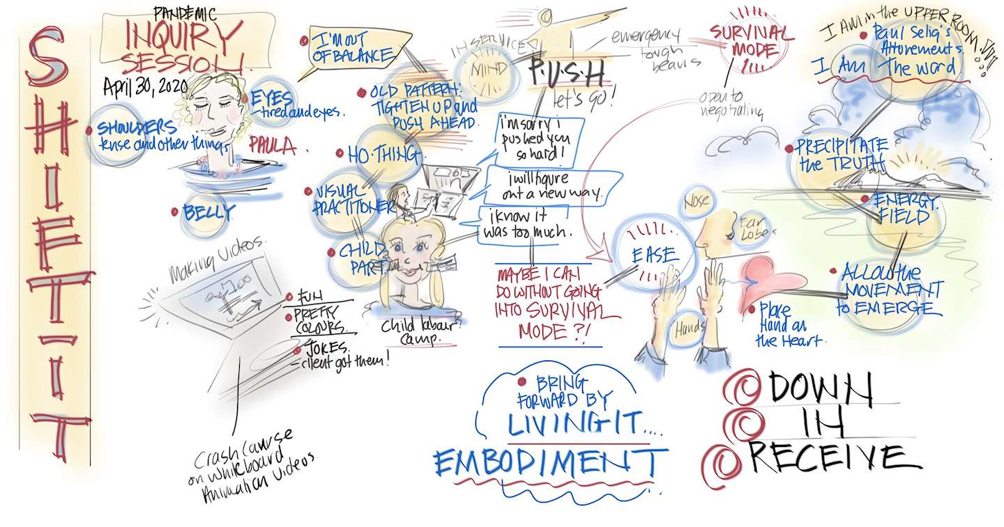 [Visual Coaching with Christina Merkley – COVID Pandemic #12]. Paula is a Graphic Recorder. Her livelihood is in-person meetings. She’s stressed from pushing herself to figure out new ways. So stressed her hair is falling out. Parallel process along as she rescues her Inner Child from a self imposed labor camp. How thanking her Survival Mode points to a new way of doing business and life. I know who you are in truth, I know what you are in truth, I know how you serve in truth. You are free, you are free, you are free. Thx Paula (and Paul Selig and his guides) for the powerful closing!