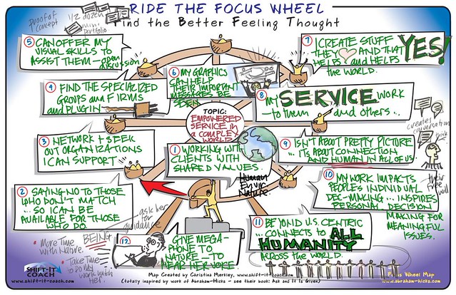1. Graphic Recorder traumatized by recent scientific gig which required her to scribe alarming content regarding state of Earth’s environment. She’s quickly awakening to the desire to use her Visual Skills in ’empowered service in a complex world’. Christina facilitated her through a Focus Wheel to hone in on what to DO yet even more importantly, who and how to ‘BE’. First up is strengthening her personal connection to Nature so she can be a ‘megaphone’ for Gaia’s voice. We each do our piece of the puzzle.