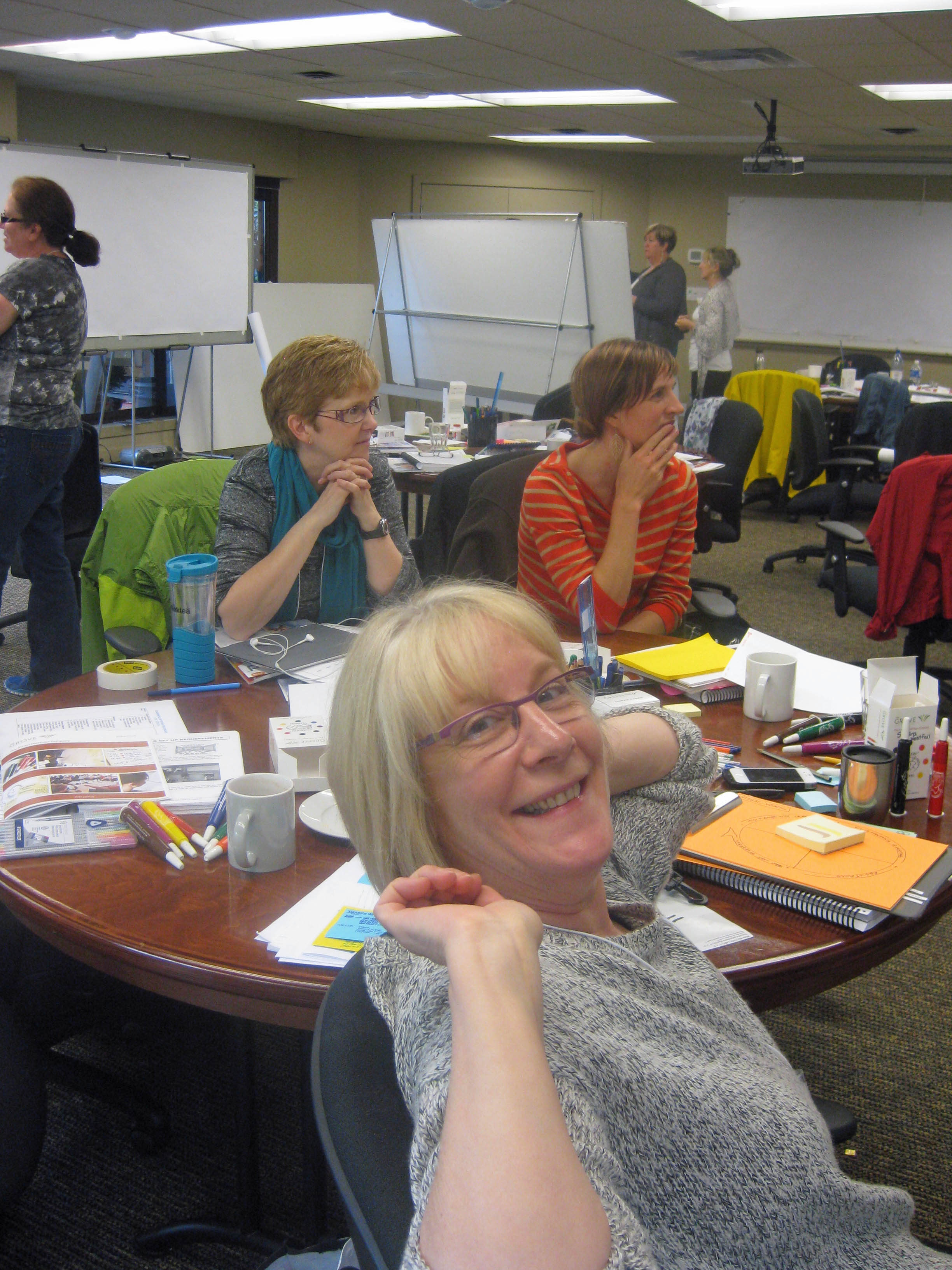 The Process Professionals in the room work with a wide range of different client populations and content. From corporate consultants (leadership, strategy, teams, marketing, sales, pr) to not-for profit (disabilities, environmental), government (aboriginal, federal, municipal, military), to lawyers (divorce, mediation and intellectual property), planners (urban), energy & consciousness practitioners (BodyTalk, Reiki, etc), coaches (biz and life), counselors, and graphic designers. Whew … what unites them is their work with groups and their desire to more effectively communicate to and draw info from their stakeholders.