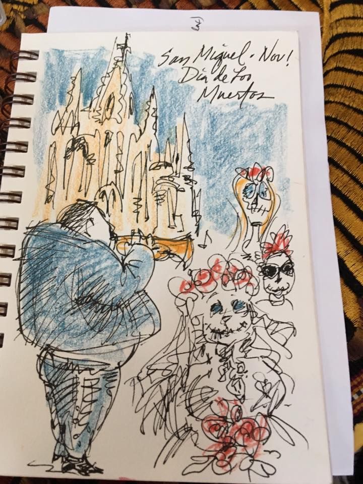 With Rhoda Draws at the cemetery, el Jardin at night and The Mask Museum in SMA Mx. These are her sketches. I aspire to be like her when I grow up …