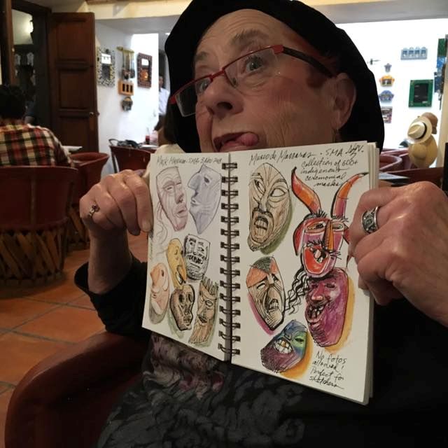 A page from Rhoda’s sketch book … from The Mask Museum in SMA, MX (well worth seeing Bill LeVasser’s amazing collection). |