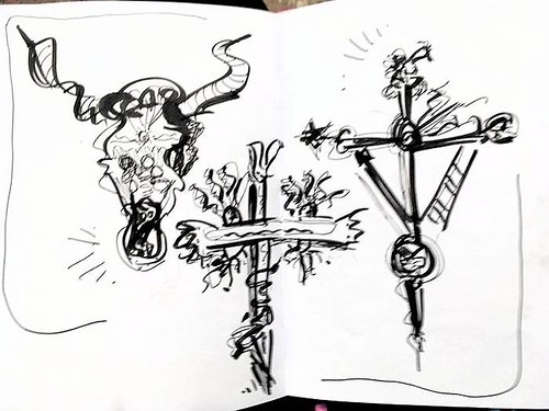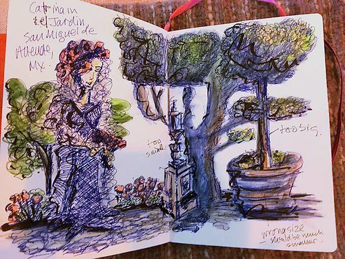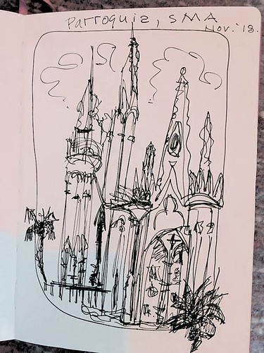 Couple more days into Sketching Fast & Loose workshop in San Miguel de Allende. Lots of eclectic folk art and architecture. Beginning to move into people and gestures. Gonna need a private with Rhoda Draws on faces (no more faceless star people if I’ve got a bit of extra time). Catrina parade is tonight … mucho painted faces!