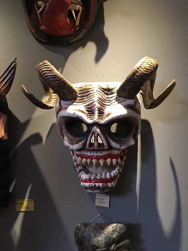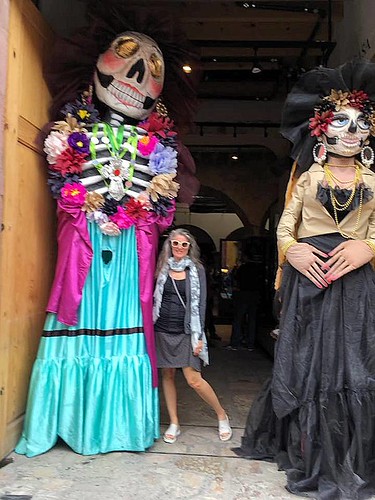 Clay Catrina on fireplace at Mask Museum.