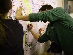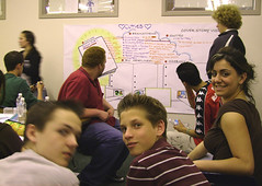 The first group I worked with was the students themselves (about 25 working in two groups). How refreshing to work with teenagers – really! They are less jaded and cynical than the rest of us. Natural visionaries. It’s just a matter of setting the parameters and then letting them loose to facilitate and create themselves. Which they did wonderfully!