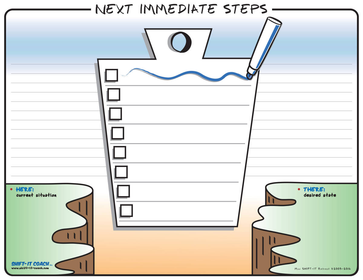 When you get aligned with your longings sometimes you will receive ideas, inklings and intuitions about what to do next. What ideas come to you about natural next steps? Given where you are and where you want to go, what little things can you begin to do, or be, to close the gap? What will make movement towards your longings that you can begin today? Write down your next steps and put accountability dates to them. Put them into your calendar and schedule. Find a support buddy, mastermind group or Coach to support you and your longings.